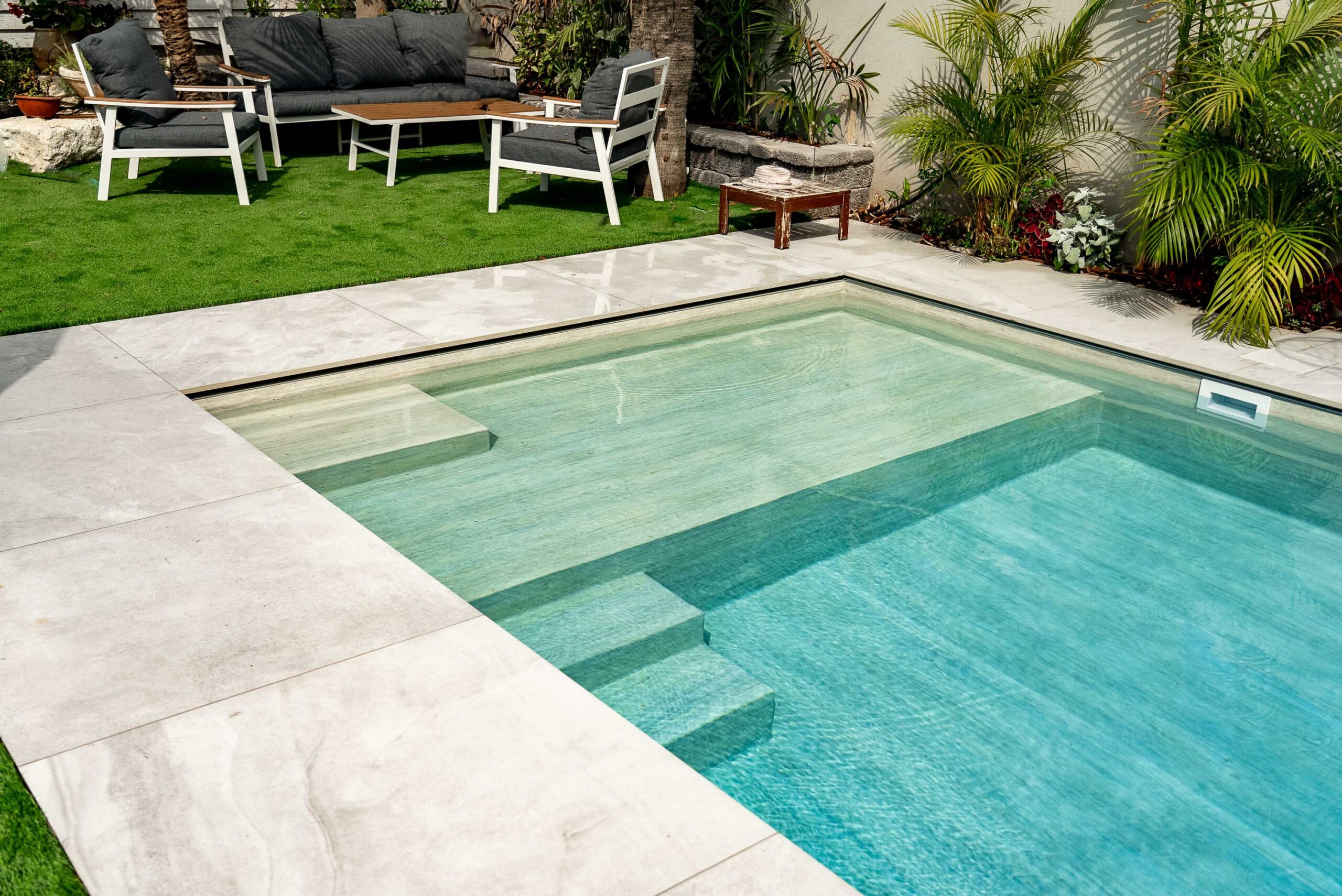 Diese Folie eignet sich für Neubau- und Sanierungsprojekte bei Stahlwand-, Beton- und Holzpools. Besonders bei privaten Gartenpools spielt die warme Holzoptik ihre gestalterische Stärke aus und schafft eine deutlich wohnlichere Anmutung als klassische Blau- oder Grautöne. Für Treppen, Einstiegszonen und andere besonders sensible Bereiche lässt sich die Anlage mit passendem Trittschutz sinnvoll ergänzen.